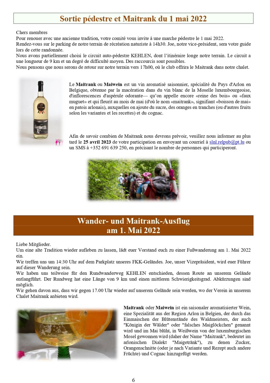 - Sortie pédestre et Maitrank du 1 mai 2022