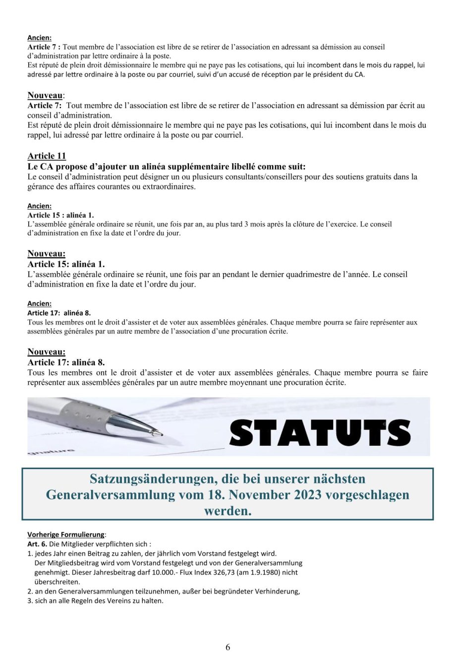 - Changements statutaires proposés lors de notre