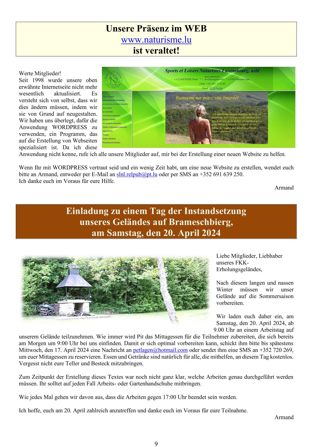 - Unsere Präsenz im WEB www.naturisme.lu ist veraltet !