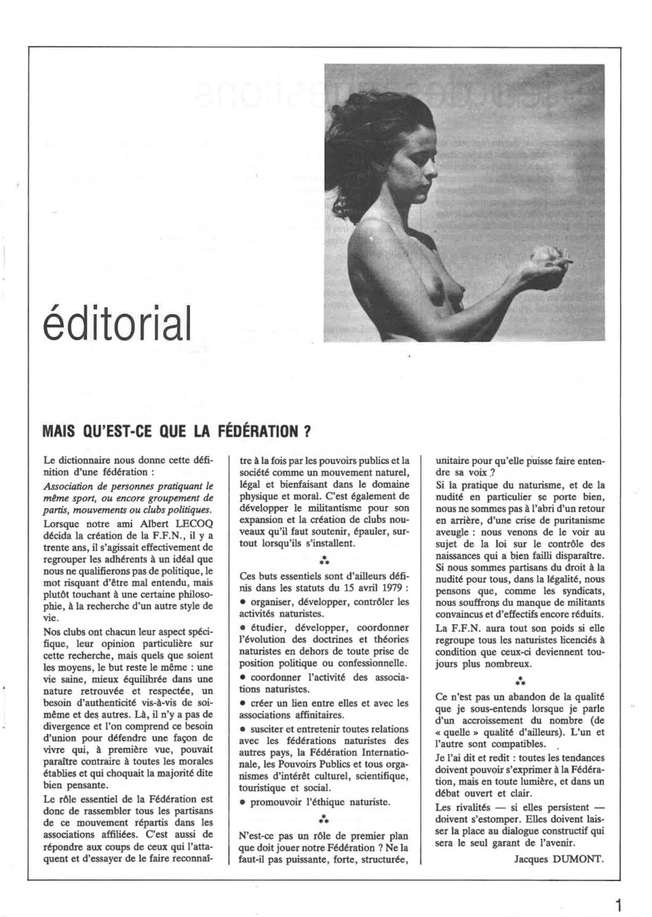 Naturisme InformationsBulletin intérieur de la Fédération Française de Naturisme Ausgabe 13 ✱ Oktober 1979 |