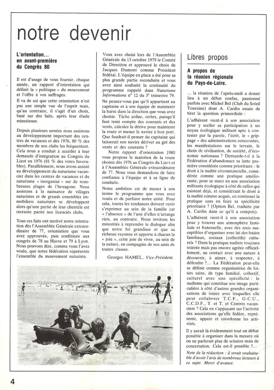 Naturisme InformationsBulletin intérieur de la Fédération Française de Naturisme Ausgabe 14 ✱ 1.Quartal 1980 |