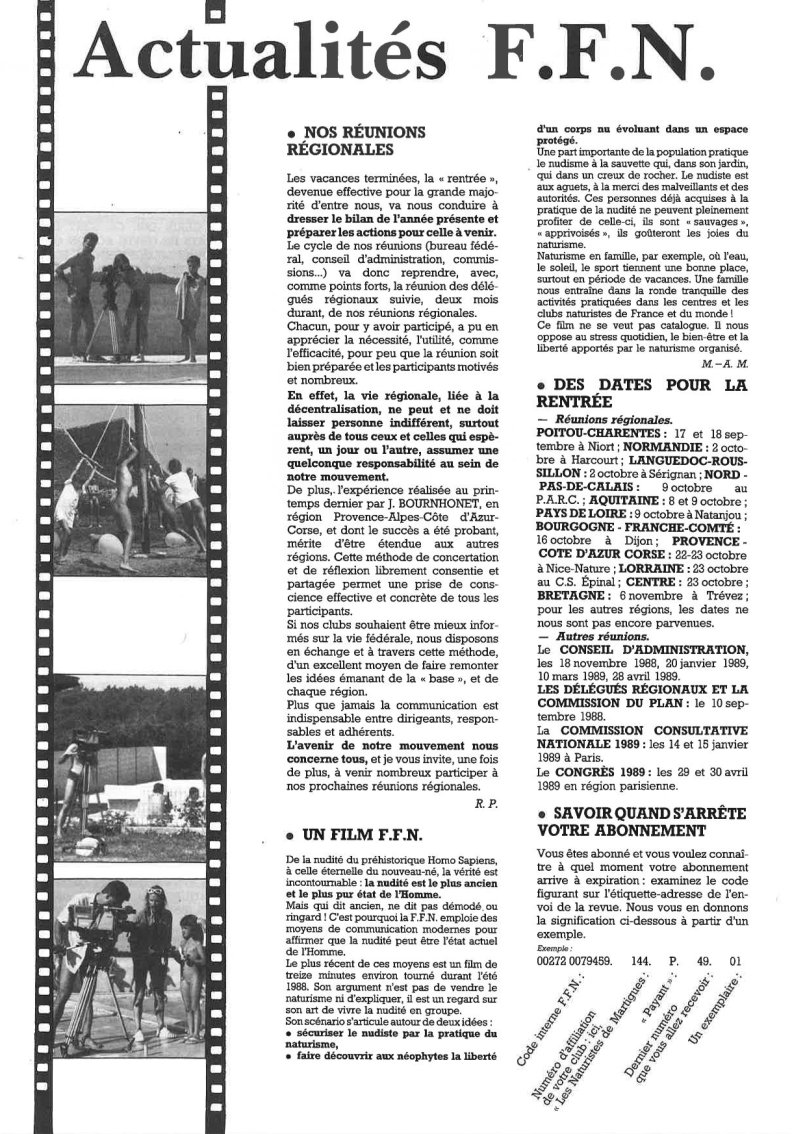 Naturisme InformationsBulletin intérieur de la Fédération Française de Naturisme Ausgabe 48 ✱ Oktober 1988 |