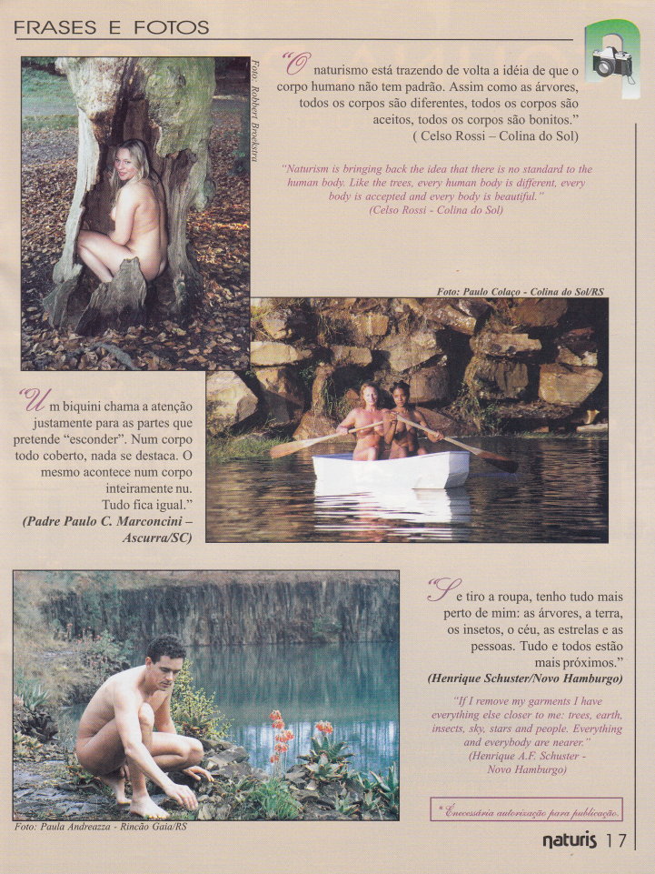 Naturis é uma publicação da Editora Naturis Empr. Naturistas Ltda. Celso Rossi 4-monatlich 36 - keine Angabe - Portugiesisch & Englisch Paula Andreazza |