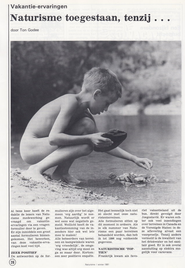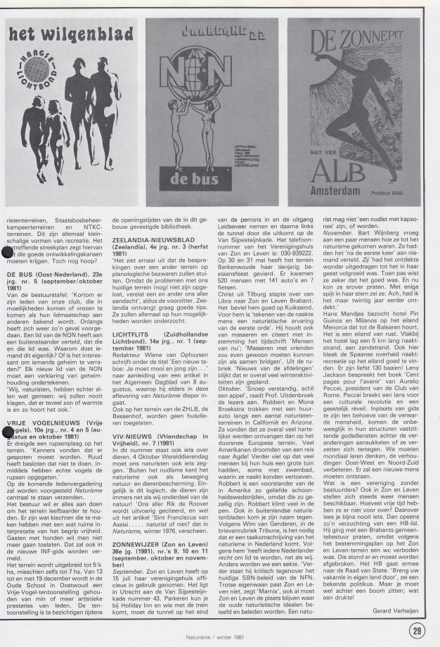 | Mit einem Rückblick auf das zu Ende gehende Jahr 1981, dazu noch ein paar Seiten zur Geschichte des Naturismus in den Niederlanden. Der Fotograf des Titelbildes war der Redaktion zur Drucklegung nicht bekannt und entsprechend im Impressum gekennzeichnet. |