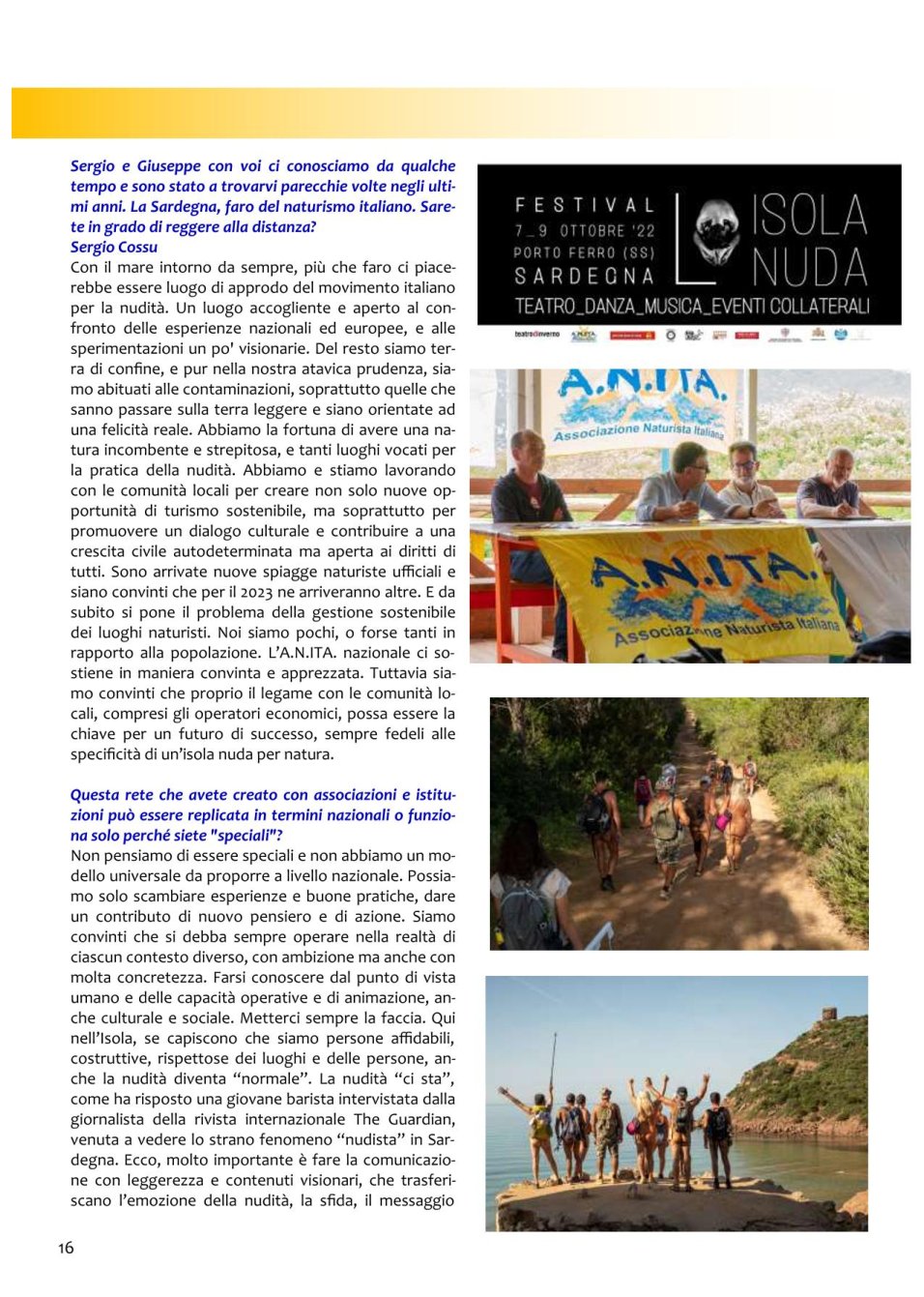 Italia NaturistaRivista di Attualita'e Cultura NaturistaItalien Ausgabe 14 • Dezember 2022 |