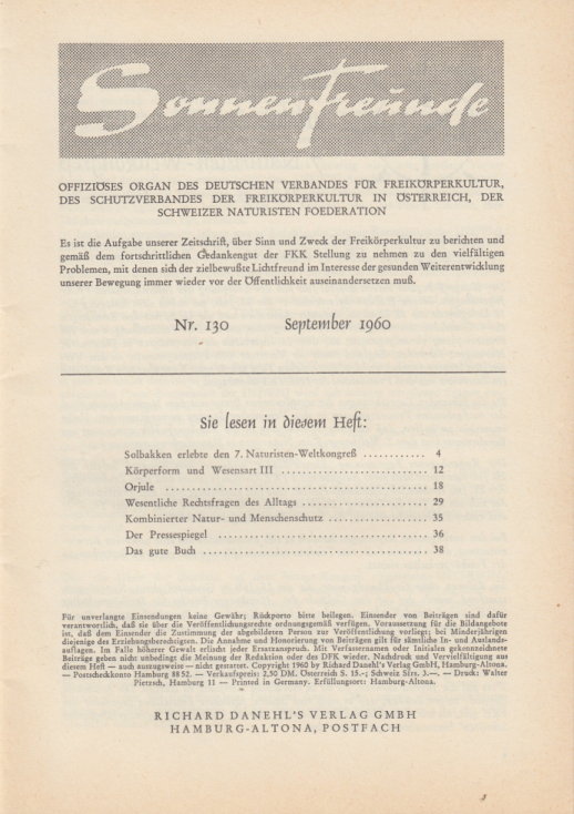 Die Zeitschrift Sonnenfreunde erschien von 1951 bis in die 1970er Jahre im Richard Danehl's Verlag.