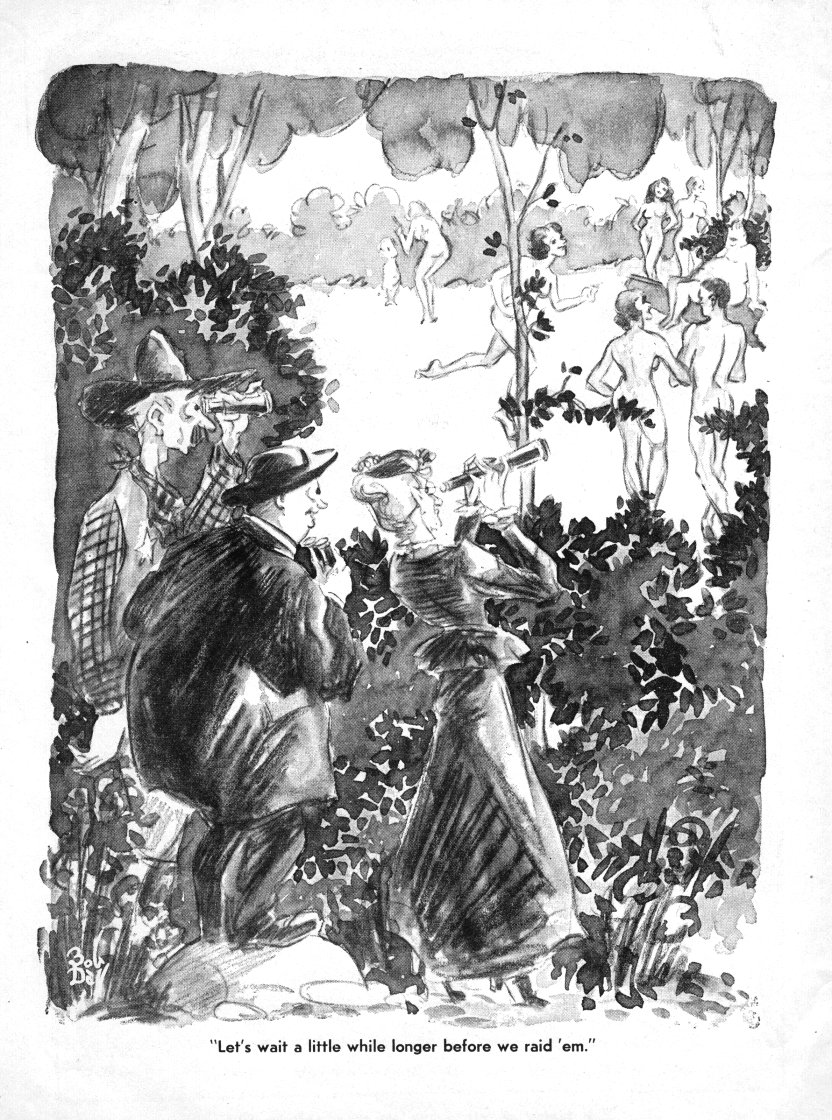 | Keine reguläre Nudisten-Zeitschrift. „Hooey” war eine in den USA monatliche erschienene Comic-Zeitschrift. In dieser Ausgabe ging es bei den Zeichnungen und Witzen speziell um die Nudisten. |