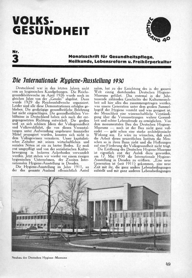 VolksgesundheitMonatsschriftder Arbeitervereine für Gesundheitspflege, Heilkunde, Lebensreform und Freikörperkultur Jahrgang 40 • März 1930 |
