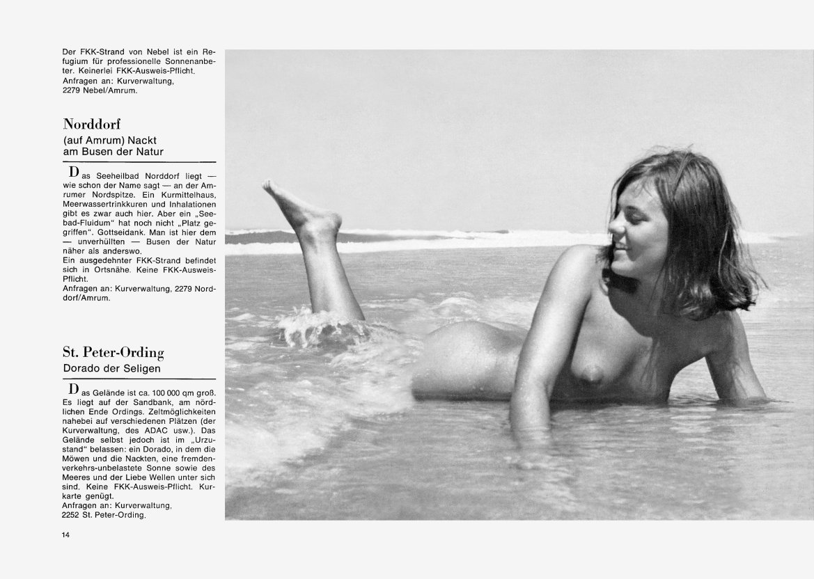 | In diesem Heft wird recht ausführlich beschrieben, wo man überall an den bundesdeutschen Stränden der Nord- und Ostsee ohne einen FKK-Ausweis nackt baden kann. Text: Gerd Berendt |