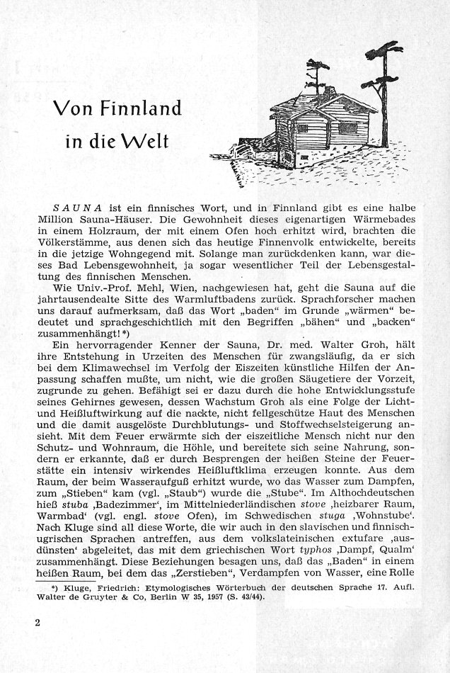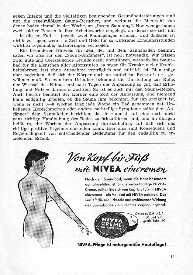 Gesund durch SaunaZeitschrift zur Pflege des Saunabadensund zur Förderung gesunder Lebensführung und Körperpflege Heft 1 • 1958 Sauna richtig und regelmäßig |