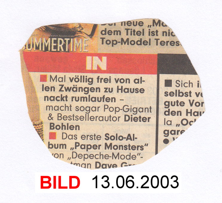 Die »BILD«-Zeitung machte am 13.06.2003 die Nacktheit zu Hause sogar zu einem »IN«-Thema |
