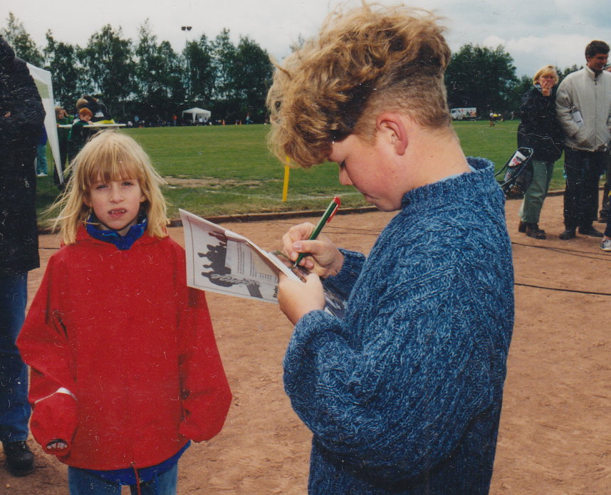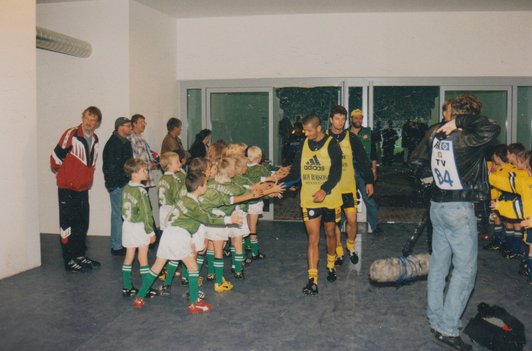 ... welcher in jenem Jahr dann zu Gunsten des Hamburger Blindenheimes stattfinden und der zugleich die Ortschaft Gülzow in den Mittelpunkt der Fuäball-Jugend stellen sollte (und es natürlich auch tat). Eingeladen waren Vereine der E- und F-Jugend aus Schleswig-Holstein, Niedersachsen und Hamburg, aber auch jede Menge Prominenz: Horst Hrubesch, Tim Küchler („Neues vom Süderhof” und „Kinder vom Alstertal”), Monika Zinnenberg (Regisseurin), Roberto (Künstler), Moderatoren von Radio-Hamburg, und, und, und... Am Ende des Tages freute sich das Hamburger Blindenheim über die gewaltige Spendensumme in Höhe von 10.000.-- DM.