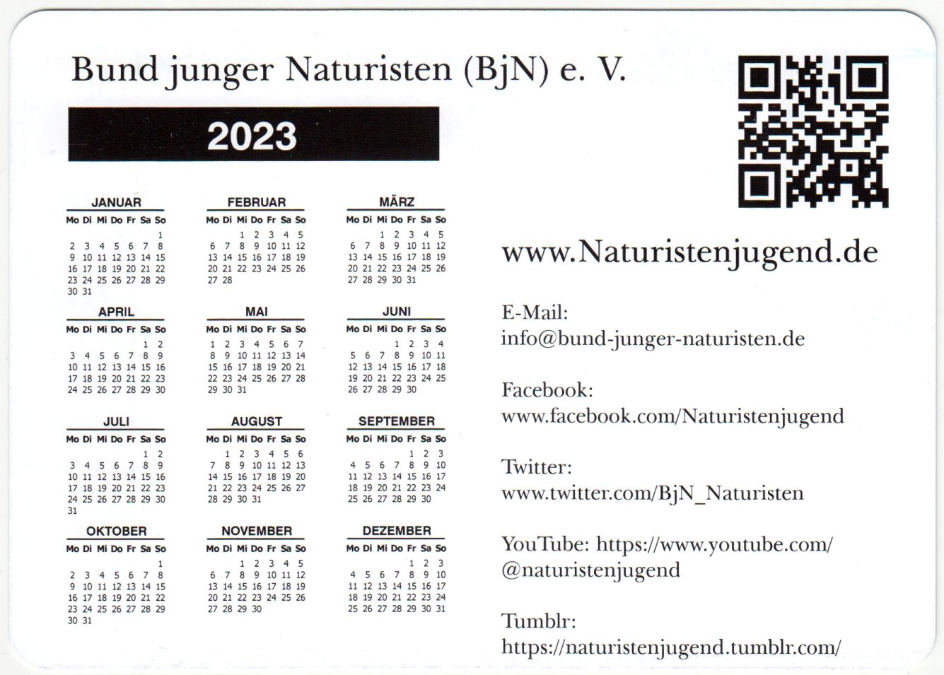 Kalender — 2023 Taschenkalender vom Bund junger Naturisten (BjN) e.V. für das Jahr 2023 10,5 x 14,8 cm - abgerundete Ecken