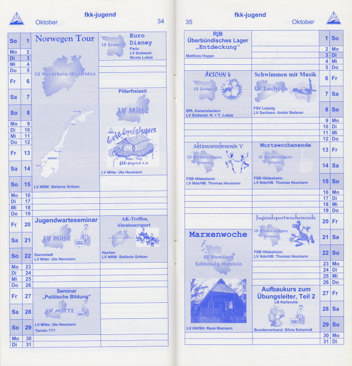 Kalender der fkk-jugend für das Jahr 2000.