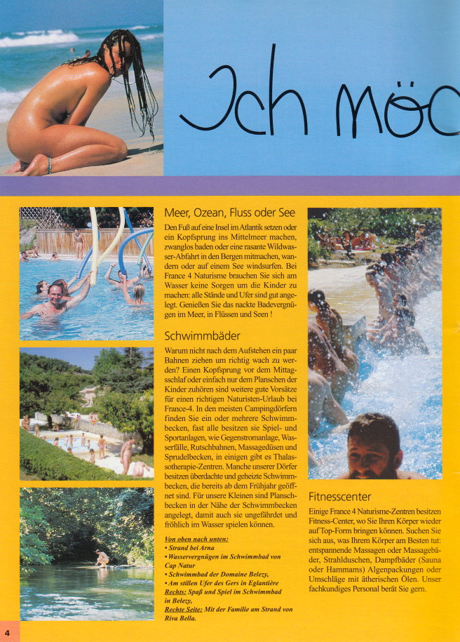 Dieser Katalog beginnt mit allgemeinen Themen zu den verschiedenen Anlagen und hebt den Naturismus im speziellen hervor. Im zweiten Teil werden die einzelnen Anlagen im Detail vorgestellt, mit Grundrissen der Bungalows und den enstsprechenden Preisen.