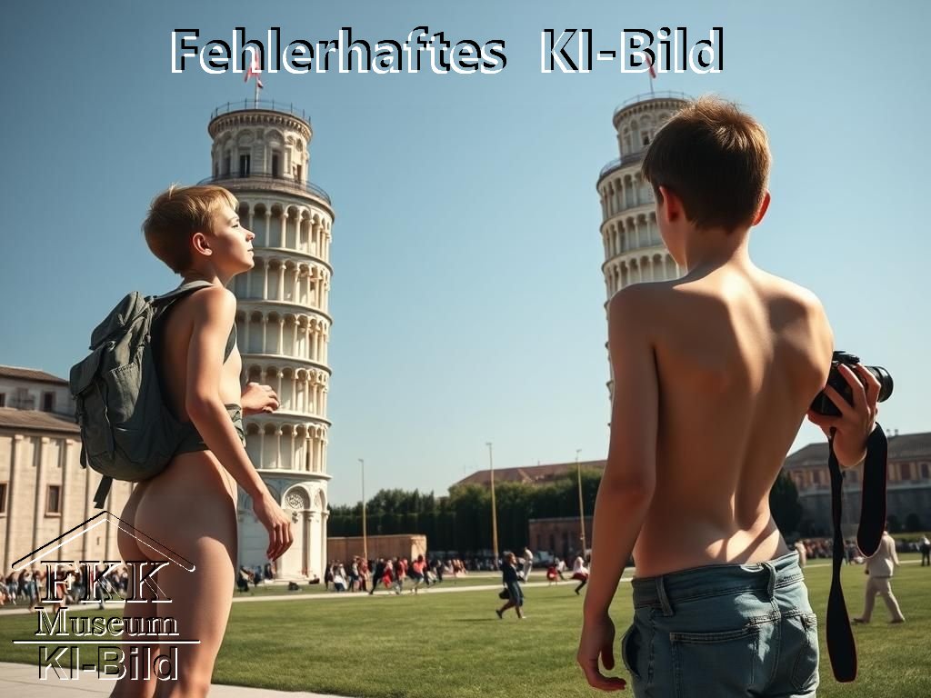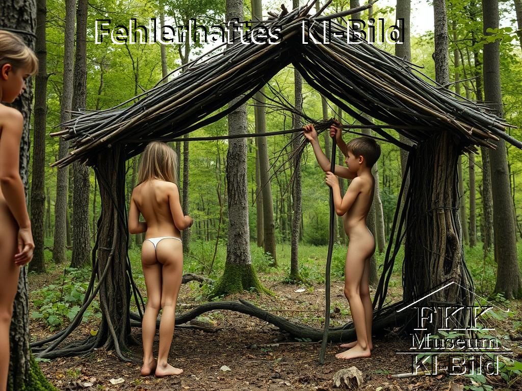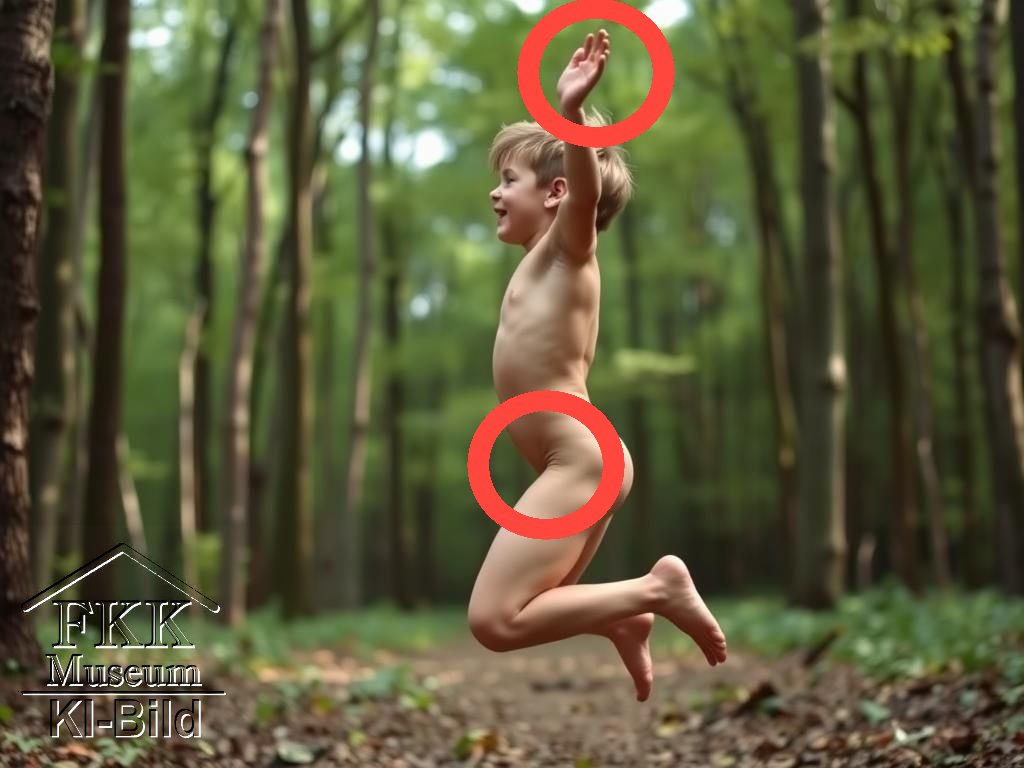 ◀ Gliedmaßen sind bei KI ein bekanntes Problem, so wurden hier die Zehen „vergessen”. Abgesehen davon, sollte das Mädchen eigentlich ebenfalls unbekleidet sein, aber das Programm ignorierte die gesetzten Prompts.