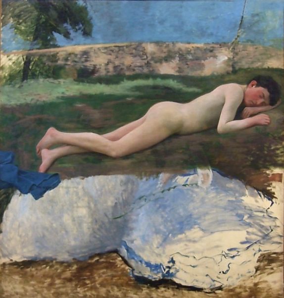 Jeune homme nu couché sur l'herbe