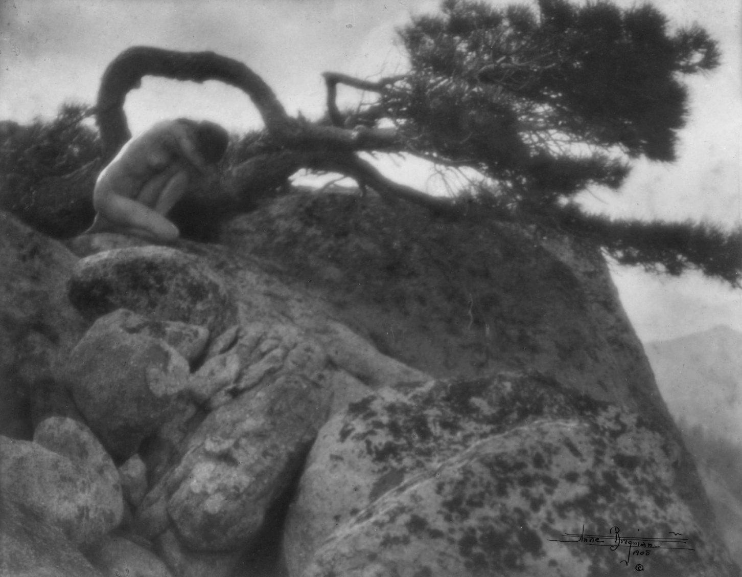 Extrem mutig und für die Zeit um 1920 absolut skandalös, die Selbstbildnisse von Anne Anne litt unter Brustkrebs und ihr musste die linke Brust abgenommen werden. Damals eine sehr komplizierte Operation mit meist recht unschönen Ergebnissen. Andere Frauen hätten nun versucht, sich zu verstecken oder schamhaft zu bedecken. Nicht so Anne Brigman. Sie sah sich auch mit nur einer Brust als eine vollwertige Frau und wollte sich und ihren Körper nicht verstecken. Mit diesen Bildern wollte sie anderen betroffenen Frauen wieder Mut machen. |