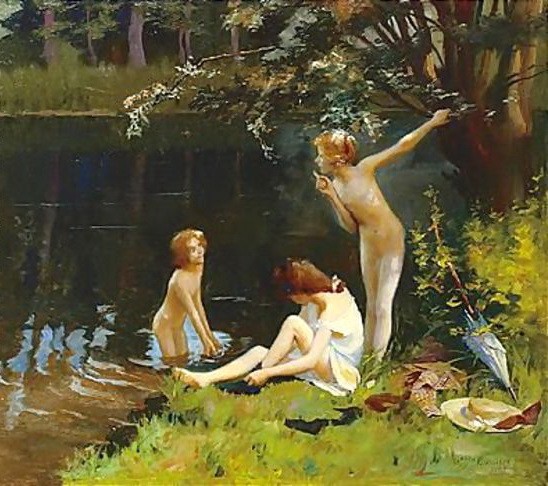 Deux Enfants Aux Couronnes De Fleurs Wassernymphe zurück