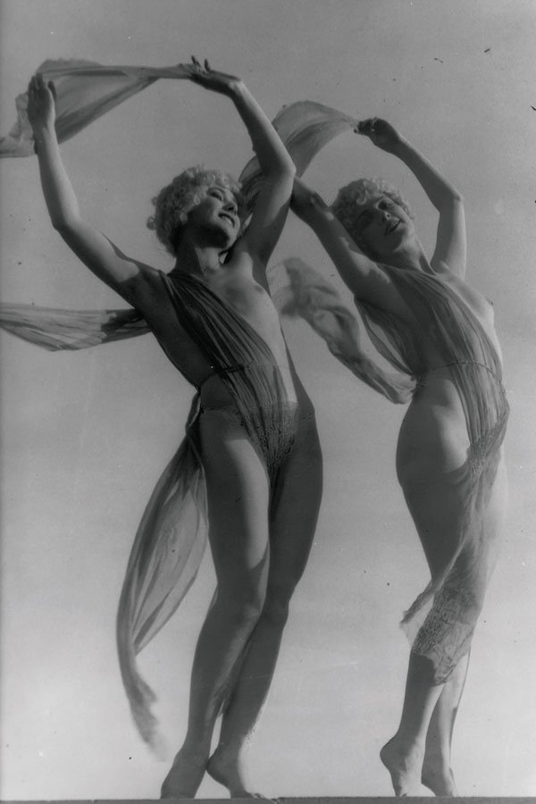 Bei seinen Aufnahmen von Tänzerinnen und Tänzern kam Genthe auch mit dem „nackten Ausdruckstanz” in Kontakt - im Studio, wie auch in der Natur.