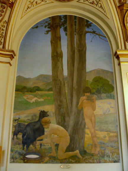 Ausschnitt einer Wandmalerei aus dem Schloß von Toulouse. Dieses Wandgemälde wird dabei