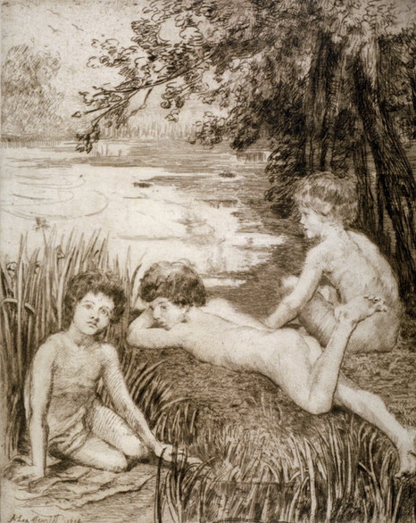 » Verlorene Liebe « - 1889 » Eve « » Kleiner Schäfer, Panflöte spielend «zurück