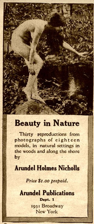 Nicholls veröffentlichte 1923 einen Katalog mit dem Titel „Woodland Romance”. Darin enthalten, zahlreiche naturistische Aufnahmen von Männern und Frauen, aufgenommen in einem Wald nahe New York. Er selbst war auch ein begeisteter Anhänger des Naturismus.