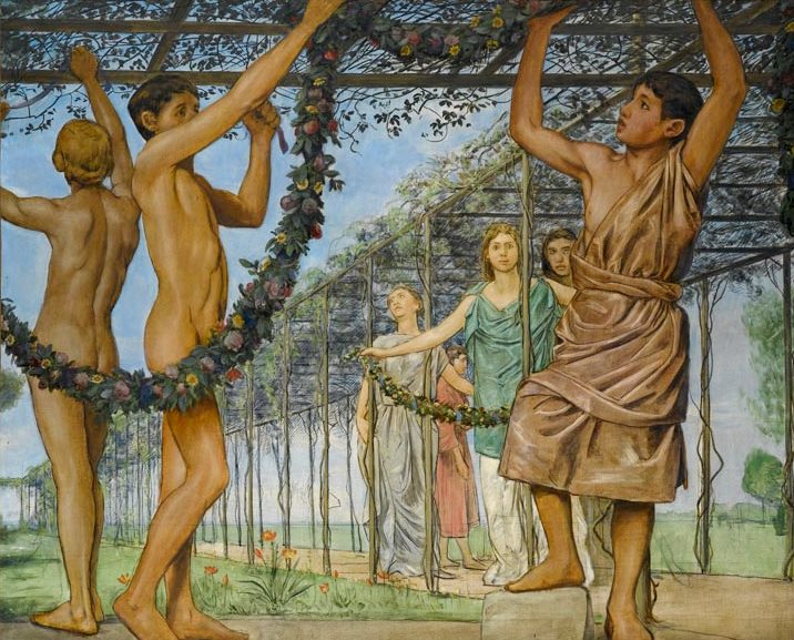 „Kinder-Reigen” Original-Lithographie aus dem Jahr 1914 zu einer dem »Wonnemonat« Mai gewidmeten Textur - im Bestand des FKK-Museums. Signatur und Datierung etwas „versteckt„ |