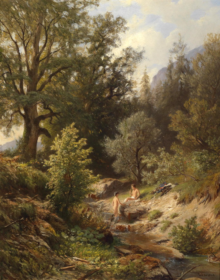 | Badende Knaben am Bachufer um 1910 - 31,3 x 39 cm |