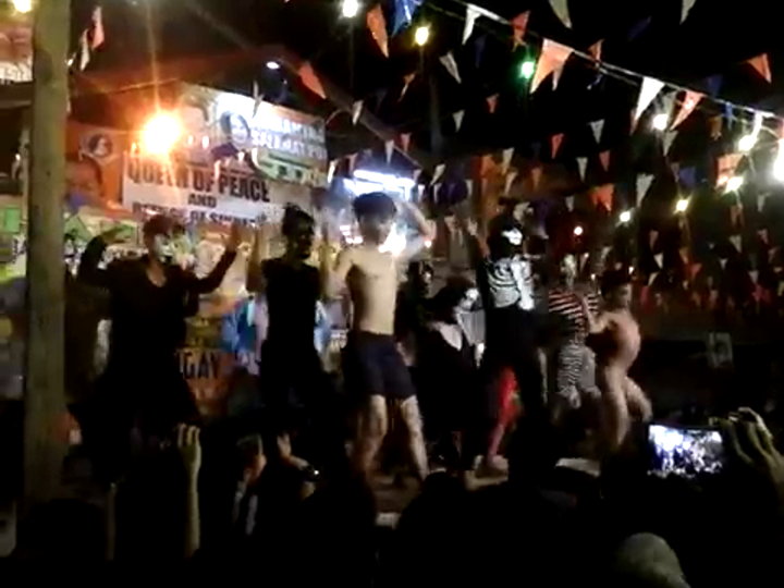 Die „Tücke” des Objekts - die Windel lässt sich nicht immer so leicht öffnen, da dauert es dann immer ein wenig, bis der Junge dann nackt weiter tanzt und seine „Flip-Flops” auf der Bühne macht.