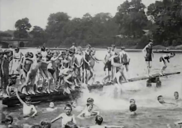 Die Kinder wussten sich jedenfalls zu helfen und kühlten sich in der Themse ab. Die kurze Filmdokumentation zeigt Kinder, die nackt und bekleidet im Bereich von Richmond, einem Wohngebiet an der Themse, planschen und baden.