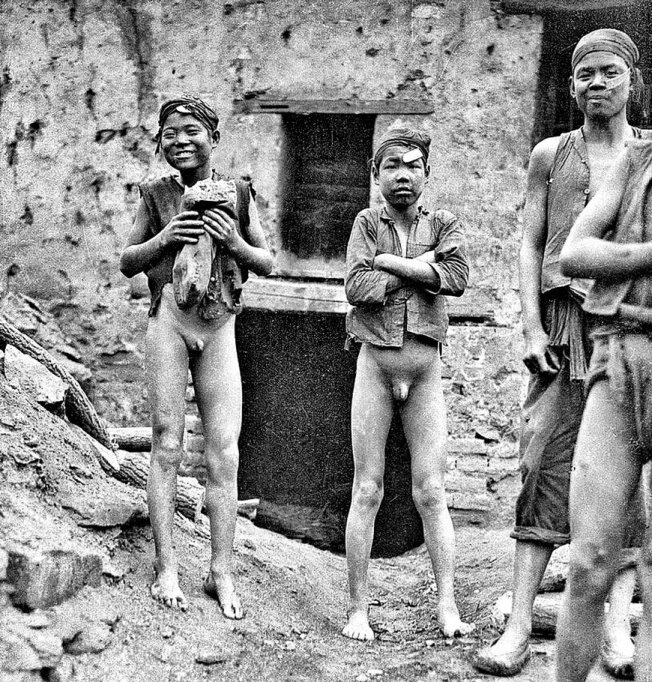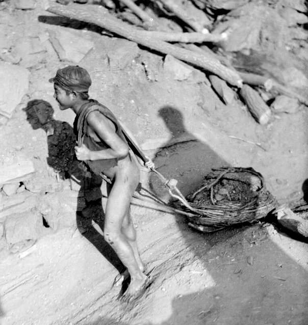 Der amerikanische Fotograf Sidney David Gamble (1890-1968) fotografierte bei seinen Dreharbeiten (1917-1931) zu einem Dokumentarfilm über China diese Jungen im Jahr 1925 bei einem dieser kleinen Kohlebergwerke in einem Dorf bei Peking.