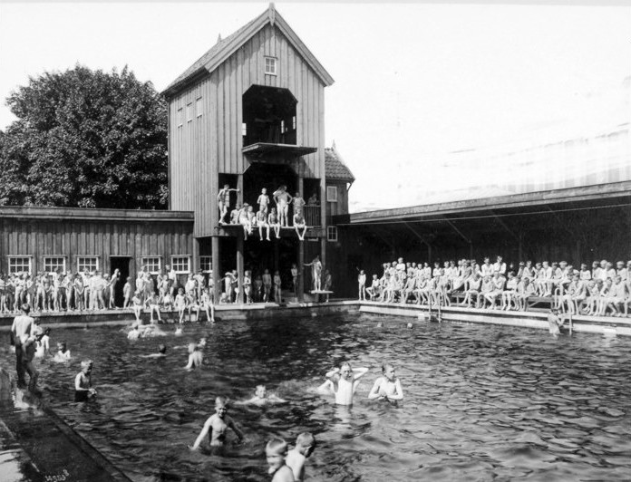 Am 19. Juni 1921 wurde in Kampen, einem Stadtteil von Oslo, das Freiluft- und Strandbad feierlich eröffnet. Die Anlage war als Wassersportzentrum konzipiert und verfügte neben dem Schwimmbad, auch über einen Tauch- und Sprungturm. Die Anlage umfasste weiterhin das Hauptgebäude (mit Büros und dem Eingangsbereich) und die Umkleide-, bzw. Auskleidebereiche (es gab keine Bekleidungsvorschrift).