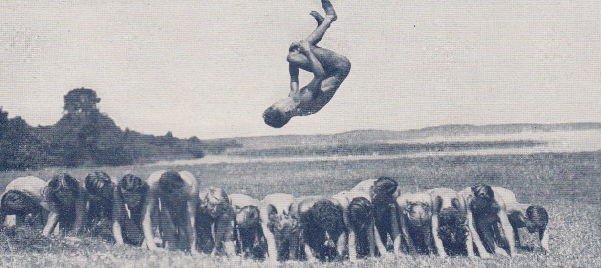 Erfolgreich war er schon, der Sprung mit einem Vorwärtssalto über 15 Menschen hinweg, den Rudi Felisch hier im Sommer 1931 absolvierte. Ob es aber tatsächlich ein Rekord oder gar Weltrekord war, ist leider nicht übermittelt.