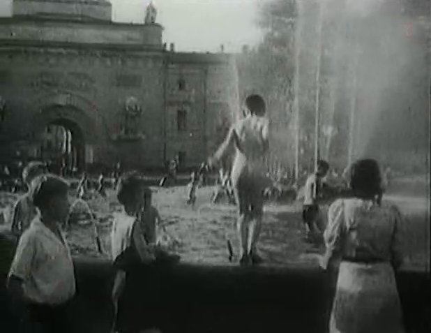 Auch in Leningrad, dem heutigen St. Petersburg, war es für die Kinder durchaus normal, an heißen Tagen in den städtischen Brunnen nackt zu planschen und zu baden. Ein „kostenloses” Vergnügen, an dem sich niemand störte.