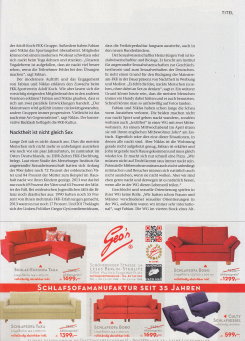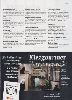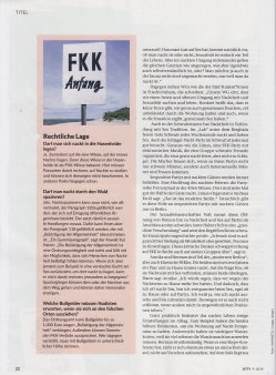 ZITTY... mit Terminen zu allen wichtigen Veranstaltungen, wie Ausstellungen, Konzerte, Museen, Festivals, Theater, Clubs Restaurants und so weiter. Auflage: 12.760 - Erscheint alle zwei Wochen, Mittwochs (Stand: Mai 2019) In Heft 9/2019 hieß es „Runter mit den Klamotten!”, denn die Freikörperkultur erlebt zur Zeit eine Renaissance, nicht nur in den FKK-Vereinen, sondern auch in WGs und an Badessen. Für ZITTY wurden junge Berliner FKKler befragt. Man will sich loslösen von der verkrampften Gesellschaft ... und die Nacktheit für sich, ist schon ein befreiendes Gefühl. Das nackte Zusammenleben in einer WG, nacktes Yoga in der Hasenheide - oder eine Nacktwanderung im Wald, der 10-seitige Artikel „Nackt ist frei” gibt Auskunft: Adressen von FKK-Vereinen in Berlin, FKK-Möglichkeiten an den Seen und Liegewiesen. Natürlich fehlt auch die Erklärung zur rechtlichen Lage nicht. Zusammengefasst lässt sich sagen: ein gut recherchierter Bericht, der sicherlich vielen jungen Leute den Naturismus näher bringt. ... und hier geht es zur Webseite → www.zitty.de. Hier könnt Ihr das Heft auch bestellen ! |