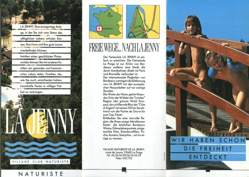 Village Club Naturioste De La Jenny»Wir haben schon die Freiheit entdeckt «Prospekt der FKK-Ferienanlage La Jenny in Frankreich.
