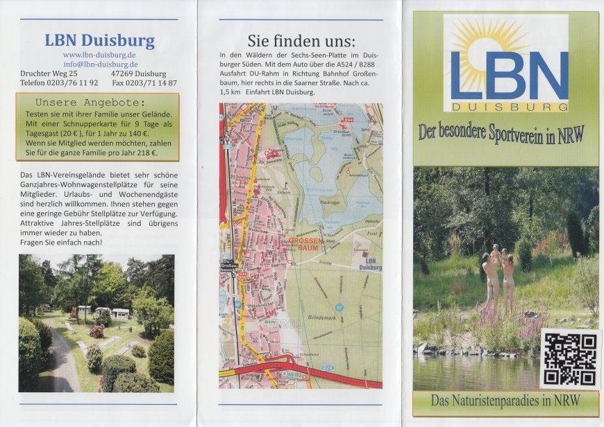 ← älterer Prospekt Werbeprospekt für den LBN Duisburg, mit Anfahrtsplan, Luftaufnahmen und Bildern von den Aktivitäten. Weitere Information unter: www.lbn-duisburg.de