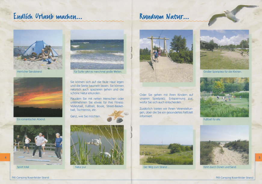 ← Flyer ← 8-seitiger Prospekt im Format DIN-A5 Prospekte für FKK-Camping an der Ostsee, dem Rosenfelder Strand. Mit Informationen und Bildern zu den Stellplätzen und den Aktivitäten. Weitere Information unter: www.fkk-camping-ostsee.de