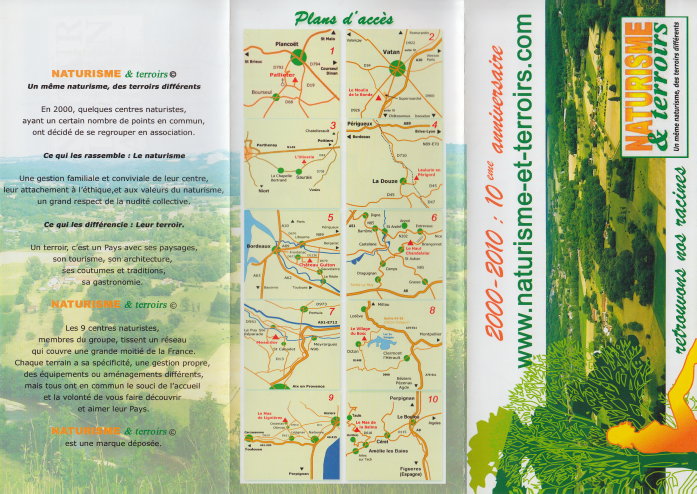 „Naturisme & terroirs” - Faltprospekt mit Informationen zu FKK-Möglichkeiten in Frankreich.