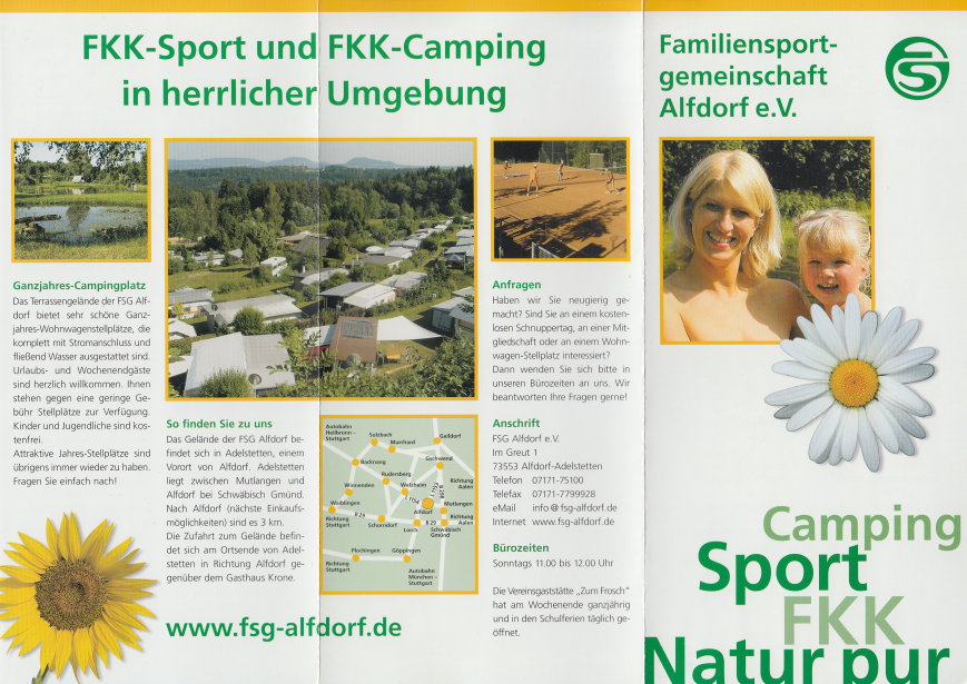 Werbeprospekt der Familiensportgemeinschaft Alfdorf e.V. (FSG Alfdorf) in Alfdorf. Mit Anfahrtskizze, Informationen und Bildern zu den Aktivitäten des Vereines.