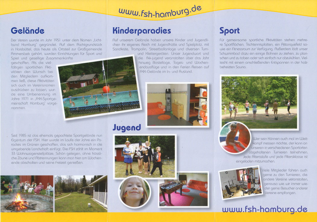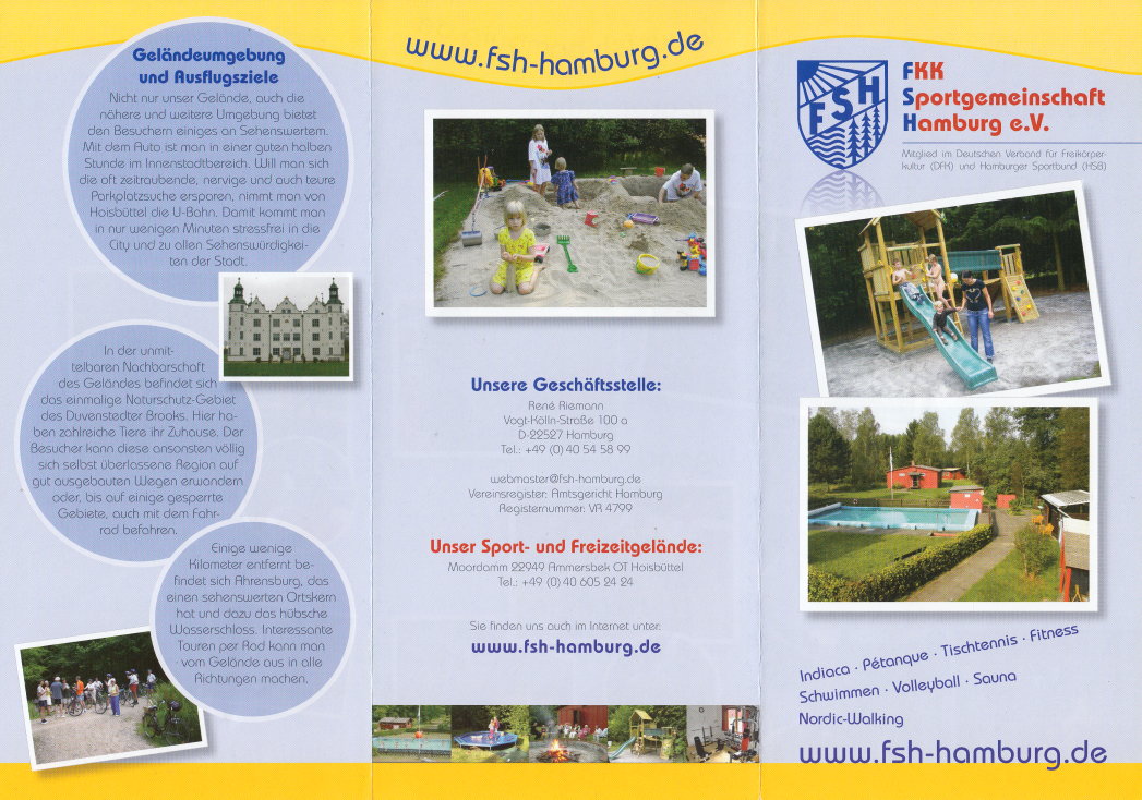 Faltprospekt des FSH-Hamburg - FKK Sportgemeinschaft Hamburg e.V. Internet: www.fsh-hamburg.de