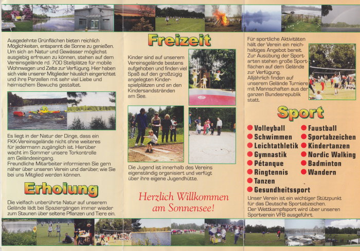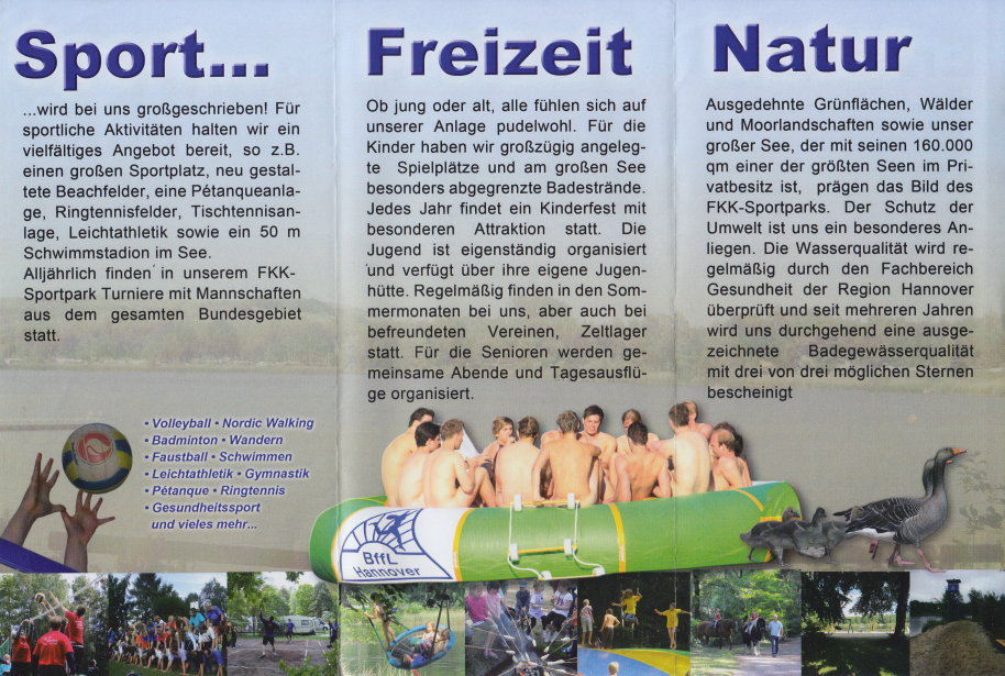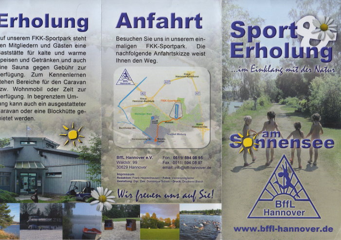 Faltprospekt mit einer kurzen Auflistung der sportlichen Aktivitäten, welche im BffL vorhanden sind, dazu eine Beschreibung des Geländes und der weiteren Freizeitmöglichkeiten, Anfahrtskizze.