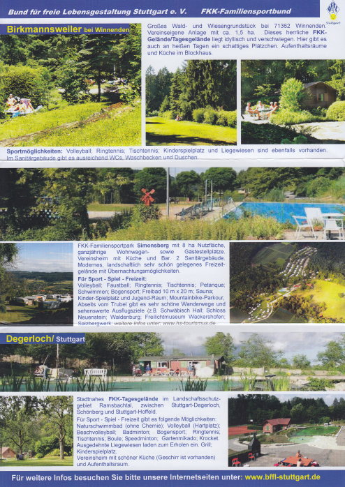 Faltprospekt - Vorstellung von drei FKK-Geländen: