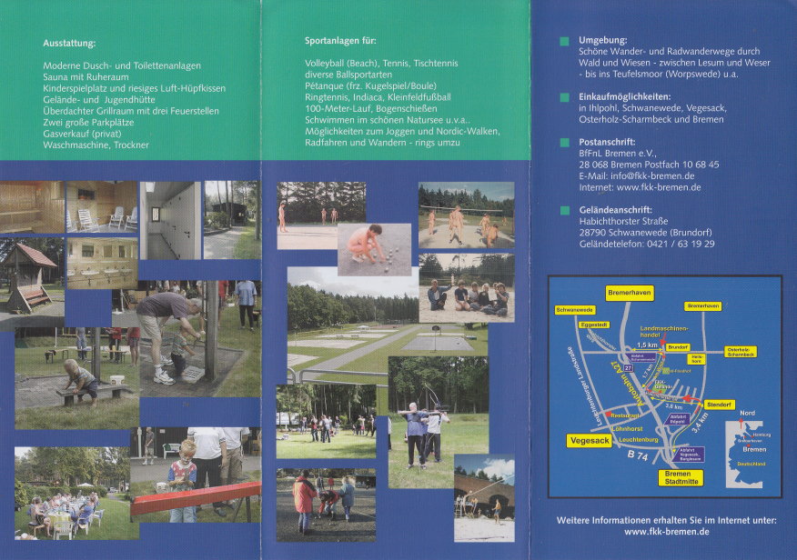 Anschrift: BfFnL Bremen e.V. Habichthorster Straße 28790 Schwanewede (Brundorf) Internet: www.fkk-bremen.de |