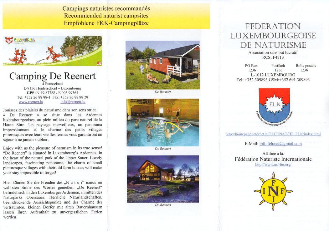 Faltprospekt der F.L.N. - Federation Luxembourgeoise de Naturisme Internet: http://homepage.internet.lu/FELUNAT/HP_FLN/index.html