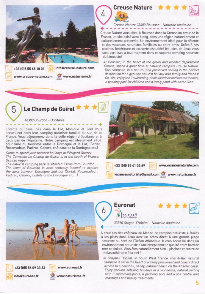 FKK-Prospekt Frankreich 16-seitiger Prospekt im Format DIN-A5 (geheftet) zu 30 Campingplätzen in Frankreich.Herausgegeben von der FEN (Fédération des Espaces Naturistes) mit Kurzbeschreibungen in französischer Sprache