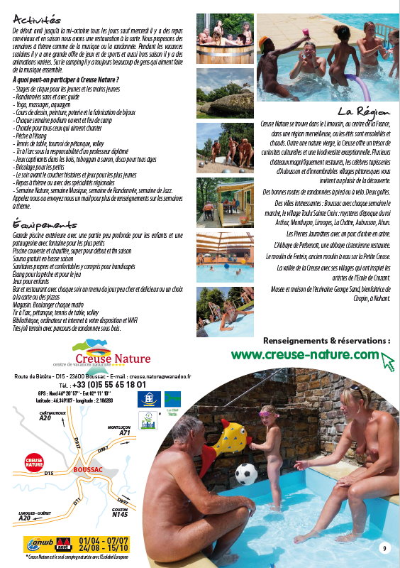 Herausgegeben von Natustar, in welchem diese 6 Naturisten-Zentren zusammengeschlossen sind. Mit Kurzbeschreibungen in französischer Sprache