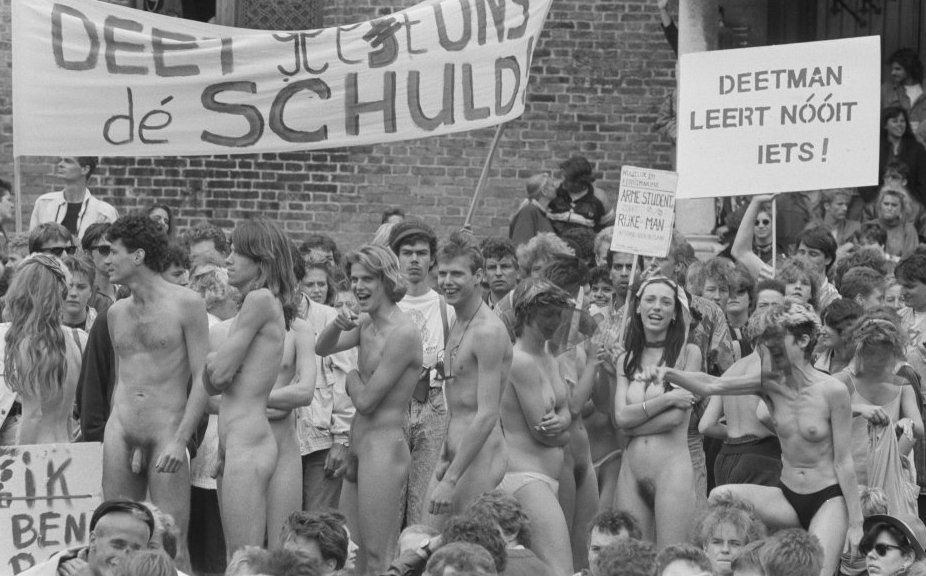 16. Juni 1988 Studenten protestieren in Den Haag, Niederlande, gegen Kürzungen im Bildungsbereich, den Stipendien und gegen die Erhöhung der Studiengebühren. |