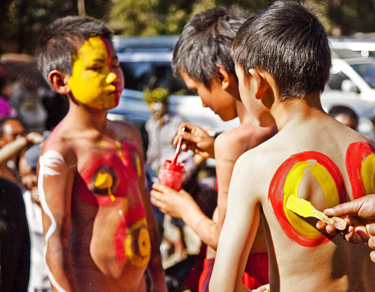 Die teilnehmenden Kinder (→ Jungen) sind bei diesem Festival komplett nackt. Erst mit zunehmenden Alter wird ein Lendenschurz getragen.